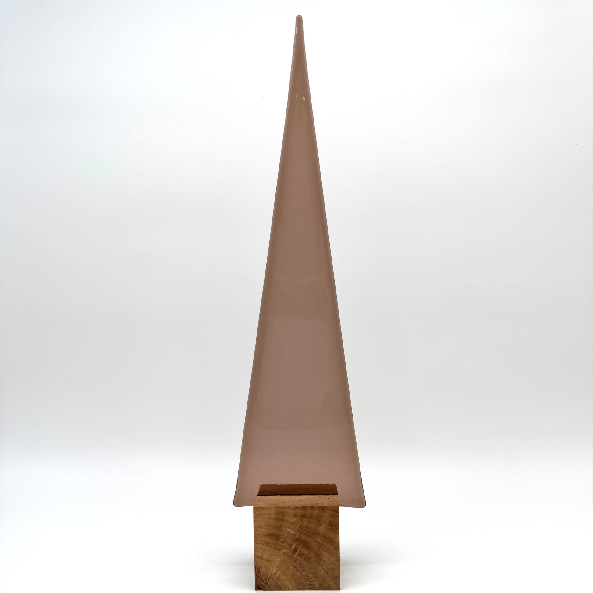 Ein eleganter taupefarbener Glasbaum, handgefertigt und auf hochwertigem Eichenholz montiert. Mit ca. 33 cm Höhe ist dieser Glasbaum ein stilvolles Dekorationsstück, das durch seine warme, neutrale Farbe in jedes Ambiente passt.