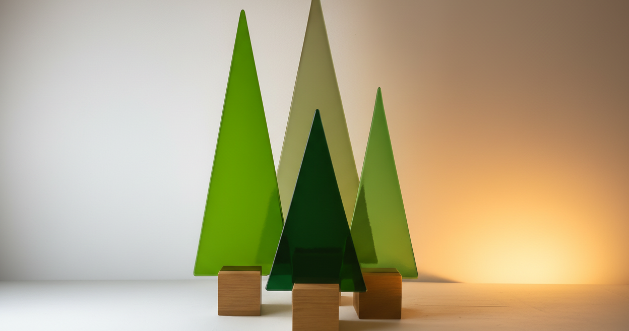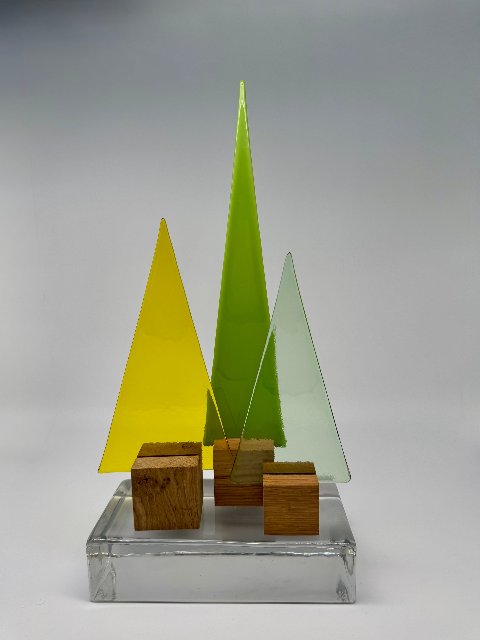 14000 Hellgrüner nicht durchsichtiger Glasbaum auf Eichenholz - ca. 31 cm hoch