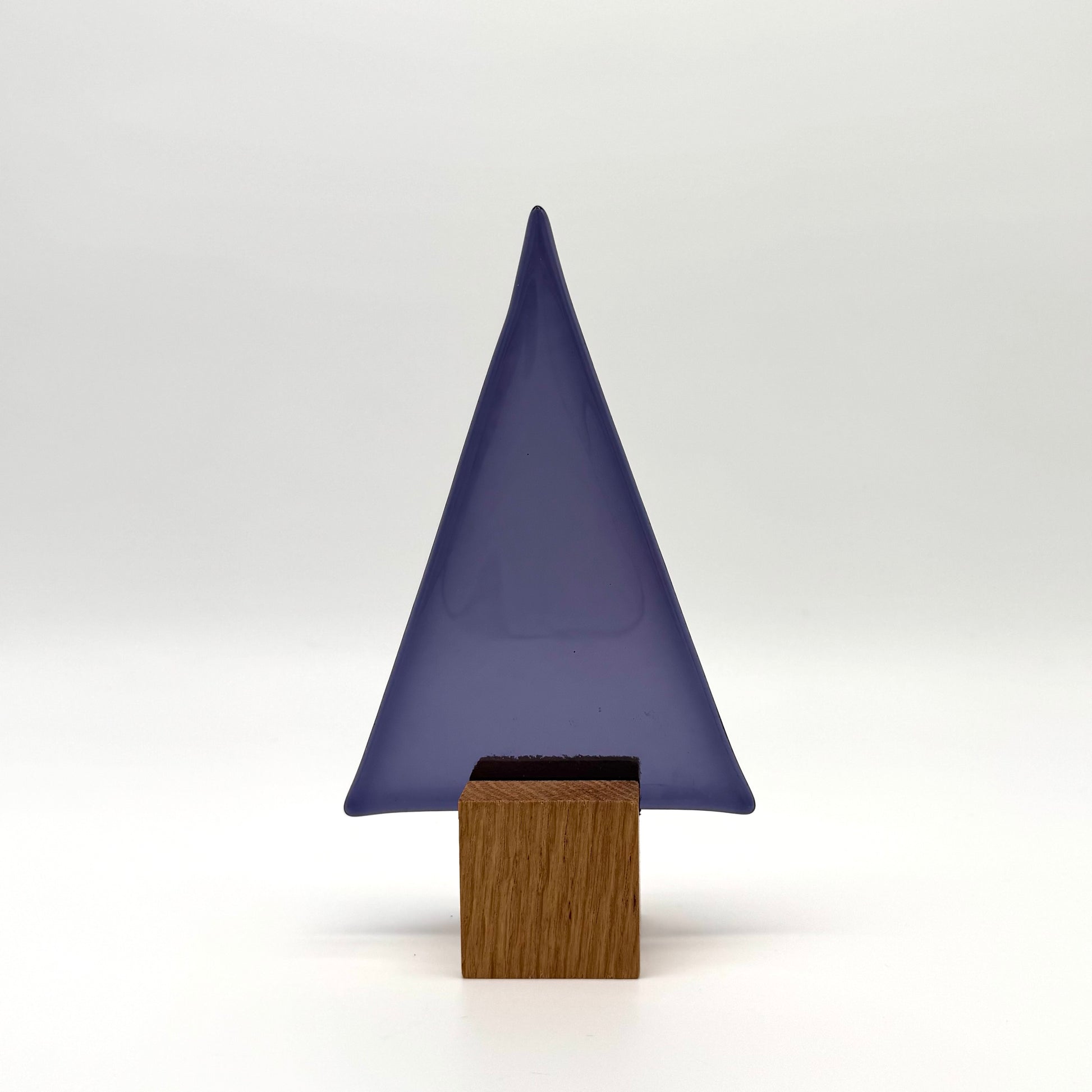 Ein zierlicher lila Glasbaum, handgefertigt und auf hochwertigem Eichenholz montiert. Mit ca. 17 cm Höhe ist dieser kleine Glasbaum ein charmantes Dekorationsstück, das durch seine edle violette Farbe besticht.